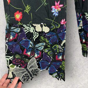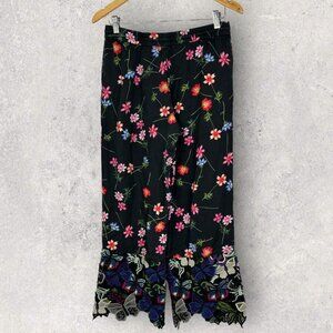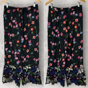 French Connection Wide Leg Crochet Floral Boho Pants Lyocell Lace Mix Trousers 2