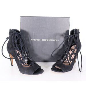 French Connection Women Size 6.5 Black Nari Pumos Lace-Up Zipper Suede Heels NEW
