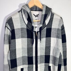 French Connection Wool Plaid Full Zip Hooded Sweater Size Large