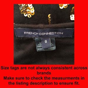 • Tag Size: 0. Approximate measurements taken lying flat: Bust 15” – 17”/Waist 14” – 16”/Hips 16” – 18”/Length from shoulder 34”