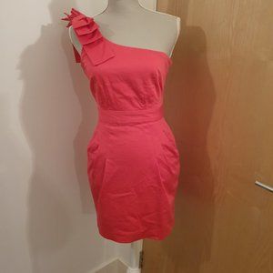 Cute one-shoulder dress. The colour is not as bright. The last picture is the best representation of the actual colour (my dress is not a wrinkly). This dress also has pockets!