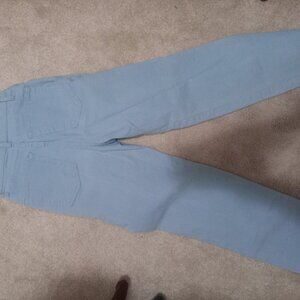 These are super comfy, high-waisted jeans in size four. Very soft cotton in powdr blue. Made in Canada!