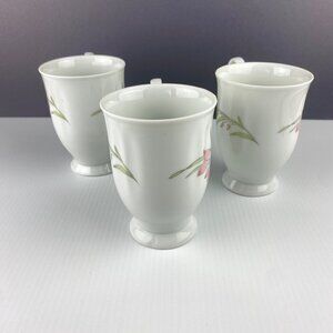 French Garden Pedestal Tea Cups / Mugs Set of 3 with Three Flower Pattern 8oz