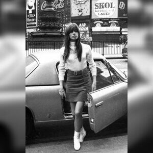 The structured cut and round belt buckle give it a charming mod sixties vibe. Rock that retro French girl cool with white boots and a fitted turtleneck, Françoise Hardy style!
