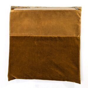 Flat lay with a comparison to my other listings to show the difference in color. This one is leaning into the chocolate spectrum, the current raw silk back will be swapped out for velvet before shipping.