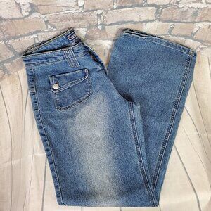 French Twist Flare High Waist Jean Front Patch Pocket Size 10 Medium Wash