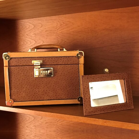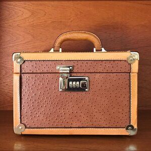 French Vintage VR DIANN Ostrich/Leather Vanity/Train Case 1970s