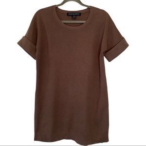 French connection cuffed short sleeve cotton/wool blend tunic sweater size 8 tan taupe EUC