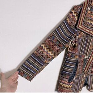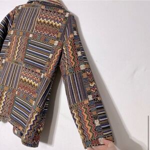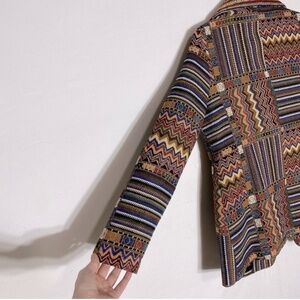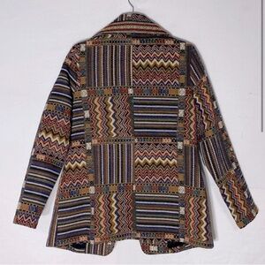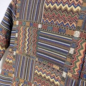 Fresh FX Chevron Stripe Jacquard Tapestry Zip Up Wide Collar Pea Style Jacket L