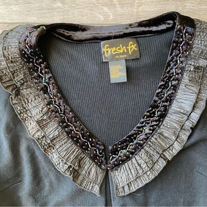 Fresh Fx Beaded Ruffles Open Front Cropped Cardigan