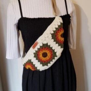Handmade/crocheted by me Sunflower Cross Body lined and zippered bag with inside zippered pocket 🌻 and adjustable nylon strap. Approximate Length 16" and Depth 6". Strap is approximately 37" when fully extended.