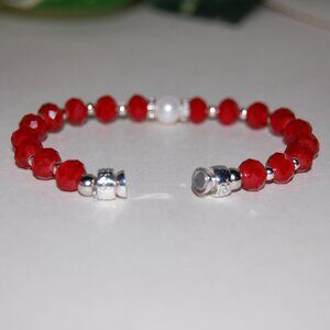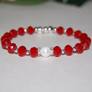 Freshwater Pearl Bracelet,Red Bracelet,Pearl and Red Glass Beads Bracelet