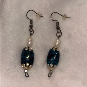 Freshwater Pearl Handmade Elegant Teal and Silver Dangle Earrings