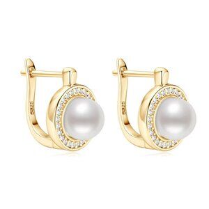 These stunning earrings feature a white 7mm freshwater pearl, surrounded by 1mm VVS1 Moissanites and set in high-quality 925 sterling silver.