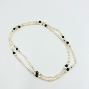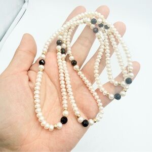 Elegant statement collar necklace featuring lustrous freshwater pearls paired with polished black obsidian stones. A bold and sophisticated accessory perfect for both formal and casual occasions.