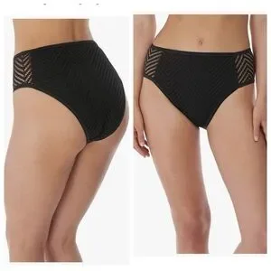 The Freya Urban High Waist High Leg Swim Brief (6967) offers a fun and flirty swimwear look with a hint of edge and plenty of tummy coverage. Features a high waist that hits just at or below the navel and high-cut leg openings to lengthen your silhouette. Peekaboo textured detailing at the hips adds visual interest, with moderate cheeky rear coverage on the back.