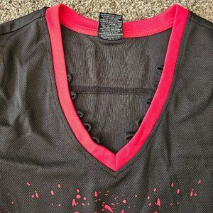 Friday the 13th Jason Voorhees jersey dress, featuring Jason's iconic mask on the front, and "VOORHEES 13" on the back. Missing the ribbon to lace up the neckline. Perfect for a Halloween costume, or hockey nights.