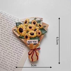 Charming sunflower bouquet magnet with 'Miss You' message. Brighten up any space with this delightful piece.