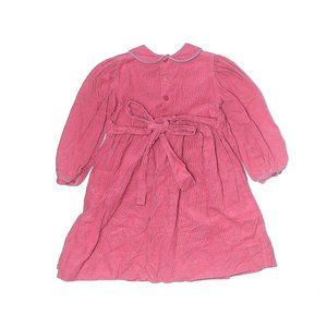 Long sleeve pink corduroy dress embellished with hand embroidered flowers over ribbed top and then continues into classy pleats down the length of the dress. Ties in the back with a lovely bow for the perfect finish.