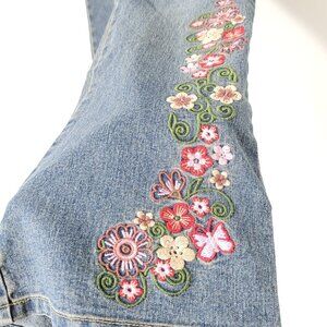 Friends II Girls Coquette Blue Floral Embroidered Cotton-Blend Flare Leg Jean 12