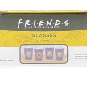 This set of four shot glasses is perfect for any Friends fan. The glasses feature a unique design inspired by the peephole picture frame from Monica's apartment. They are made of high-quality glass and come in a beautiful shade of purple. These shot glasses are perfect for any party or gathering, and can also be used as a collectible item for Friends enthusiasts. Add this set to your barware collection or gift it to a fellow Friends fan.