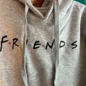 Soft women's Large hoodie featuring the iconic Friends logo. Comfortable blend material with a large front pocket and a cozy hood for casual use.