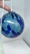Beautiful handmade glass friendship ball in teal and royal blue. Give as a gift or keep it for yourself. Comes on a ribbon to hang indoors or outdoors.