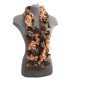 Frilly Ruffle Knit Scarf Wrap Boa All Season Accessory Brown Earthy Tones New