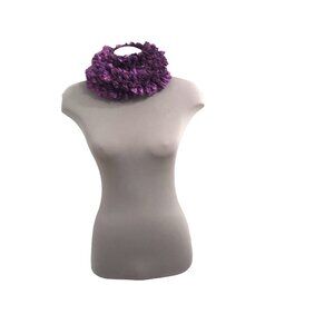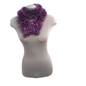 Frilly Ruffle Knit Scarf Wrap Boa All Season Accessory Dark Purples Ribbon Mix