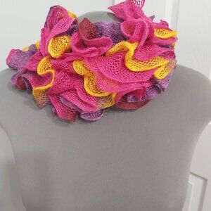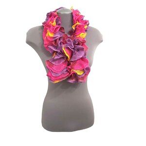 Frilly Ruffle Knit Scarf Wrap Boa All Season Accessory Pink Yellow Purple New