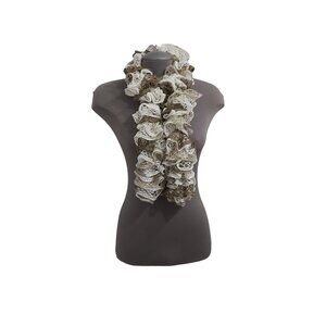 Frilly Ruffle Scarf Wrap Sparkle All Season Accessory Beige Gray White Shuffle