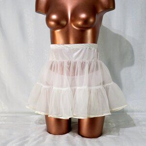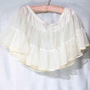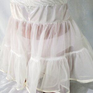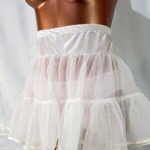 Vintage petticoats are so much fun to frolic in...or to wear under a swing dress or skirt. So pretty and frilly! This is a white petticoat in a generous plus size. The tags are gone, but it measures from 36 to 48 at the high waist, so I think fits from 2X to 4X. Yes, I had to pin it to fit my dolly! Your perfect tutu awaits. Panties not included.