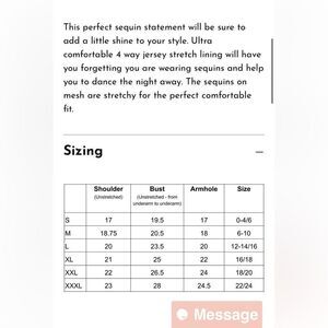 Small patch of sequins missing on the back of 1 arm. See last photo