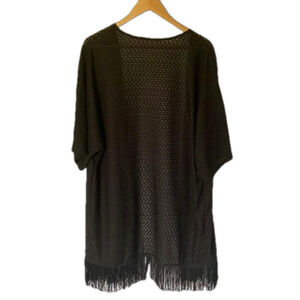 This is a Cute little Open Front Kimono style Fringed Coverup. Lightweight crocheted/mesh style. Perfect to put on before heading to the beach bar! Black