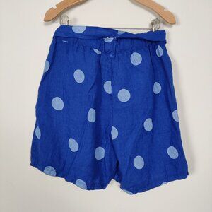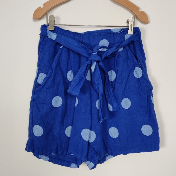 Froccella Women's Shorts One Size Blue Linen Polka Dot Resortwear Lightweight
