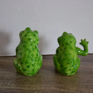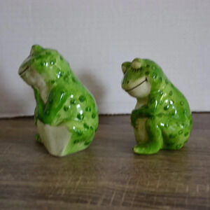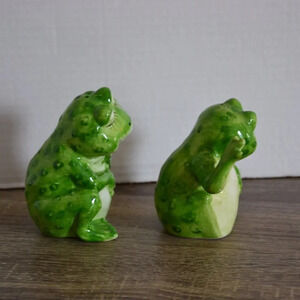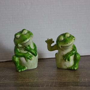 Adorable ceramic frog salt and pepper shakers. Fit together as a hugging froggy pair.