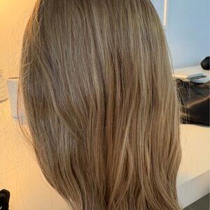 Human hair wig, can be dyed, and heat styled. Ear tabs and lace front. Can be parted multiple ways. Originally purchased for $800.