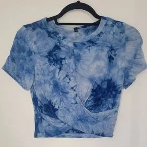 Selling this blue tie dye rushed in the front crop top. Lightly used. Size medium