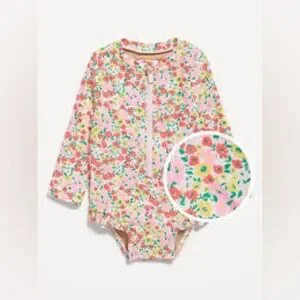 Ruffle Trim, Front-Zip, Printed Rashguard Swimsuit from Old Navy in 18-24M