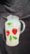 vintage Bartlett Collins strawberry pitcher. It is a hand-painted, frosted white glass pitcher that was manufactured in the 1950s.