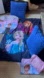 Frozen themed bedding set featuring characters. Includes blue and purple colors.