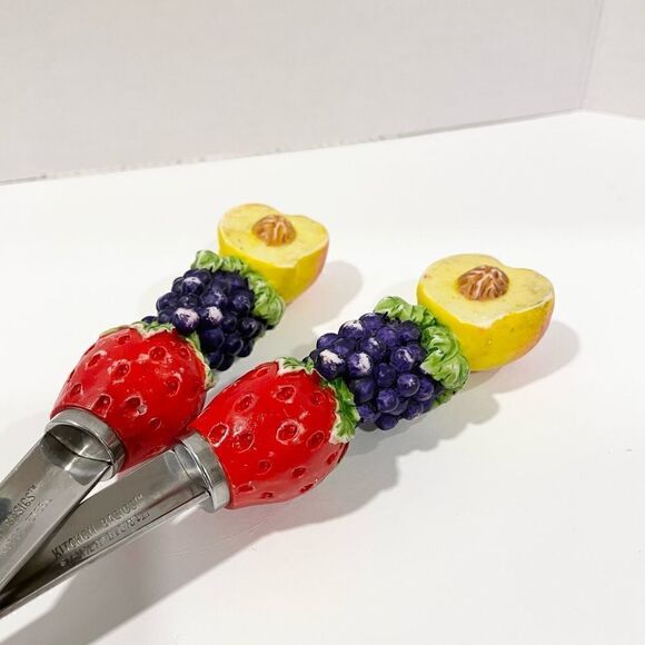 Fruit Fruity Salad Tossers Tongs Approx. 12” long Good Condition Grapes, Peaches