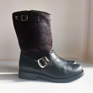 Frye Black Leather Cow skin Mid Calf Boots 6.5B Mexico