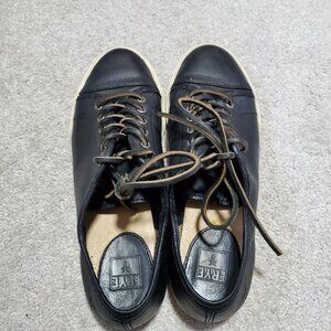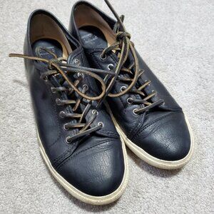 Sleek black leather sneakers. Durable design. Comfortable fit.