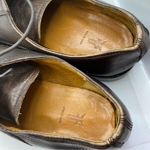 Frye oxfords in reddish brown. Leather just cleaned and conditioned. Leather has a nice patina. Some wear. Size 9.5.