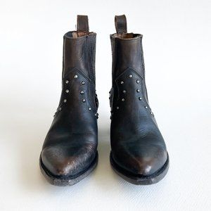 Stylish Frye ankle boots. Rich brown leather. Studded accents. Perfect for any occasion.