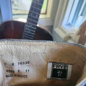 2 inch heel, size 7 b, sole measurement from toe to back of heel is 9 inches. Inside measurement is 9.5 inches. Made in Mexico. Frye booties retail new from $228.00 CAD and up.