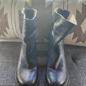 Gorgeous gently used Frye leather booties with 2inch heel SHOULD be yours girl! These black southwestern cowgirl cute short boots with tie up back detail look great with jeans, a dress or shorts and can be worn almost all year round (depending on where you live 😉)