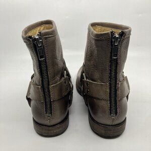 Frye Leather Boots Womens 6B Philip Harness Ankle Moto Rider Boots Gray