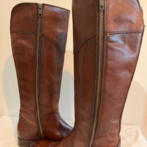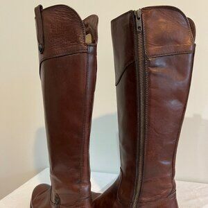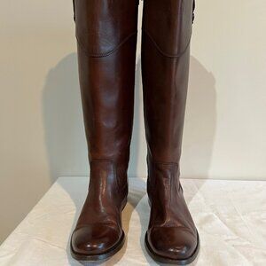 Excellent Condition Leather Frye Melissa Button Boots. Size 6. Leather is in excellent condition, no fading or scratches at all. Color is cognac. Zipper is in excellent condition, very lightly worn.